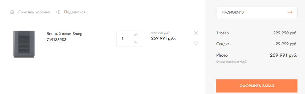 2.Введи в специальное поле промокод ПРОМОКМ10* нажмите на стрелочку для перерасчета цены.