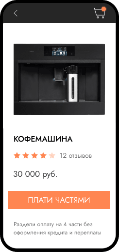 Когда товар уже в корзине, просто выберите способ оплаты «Плати частями»