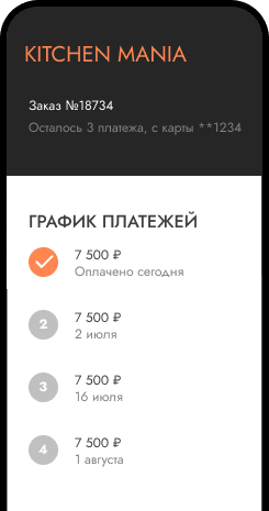 Сервис позволяет разделить оплату на 4 равные части. При этом у нас нет процентов или дополнительных услуг, за которые нужно платить лишние деньги.