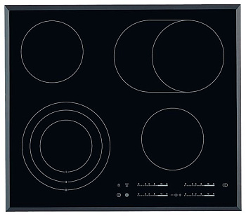 Электрические стандартные и индукционные варочные поверхности, имеющие разные режимы работы и программы, а также опции: объединение конфорок, автоопределение наличия предметов посуды и их диаметра, автоотключение, режим Power для быстрого закипания.