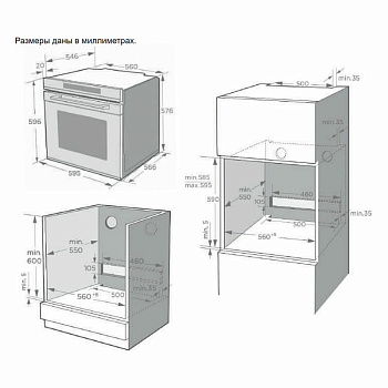 Электрогриль, конвекция, звуковой таймер, электронный дисплей, направляющие на 2-х уровнях, поверхность – нержавейка со специальным покрытием от отпечатков пальцев, каталитическая очистка.