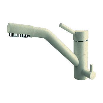 Смесители изготавливаются из прочного и долговечного материала латуни и имеют внешнее покрытие из искусственного камня – литого мрамора, который состоит из полиэфирной смолы и молотого гранита. Латунь прочнее, чем нержавеющая сталь. А литой мрамор по характеристикам превосходит керамический материал и даже хром, так как стоит дешевле, но при этом обладает высокой прочностью, приятен наощупь и устойчив к различным внешним воздействиям.