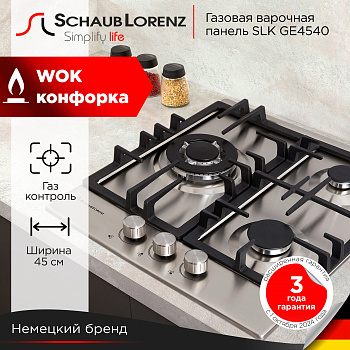 Вместо громоздкой плиты можно приобрести более компактную, многофункциональную и безопасную варочную панель популярного немецкого бренда Schaub Lorenz. Производитель выпускает встраиваемые устройства с независимой установкой, которые требуют подключения к газопроводу или газовому баллону.