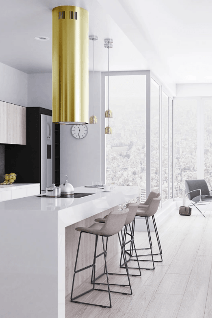 Островная вытяжка в глянцевой золотой отделке
