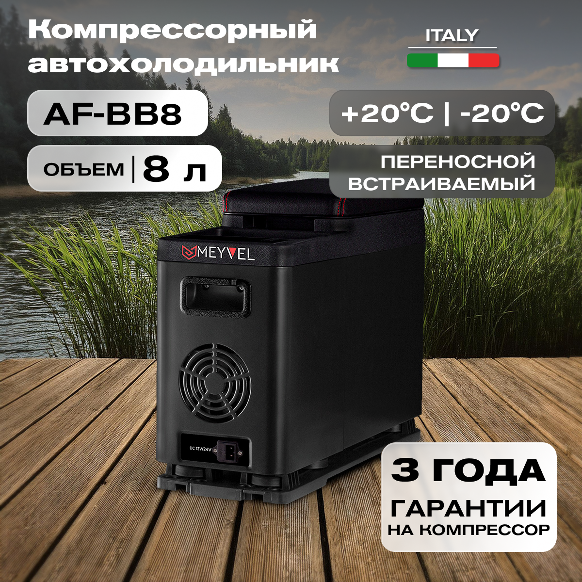 Автохолодильник компрессорный встраиваемый Meyvel AF-BB8 (ALPICOOL CF8) - 1шт Кабель питания 12/24 - 1шт. Установочный комплект - 1шт. Инструкция по эксплуатации - 1шт