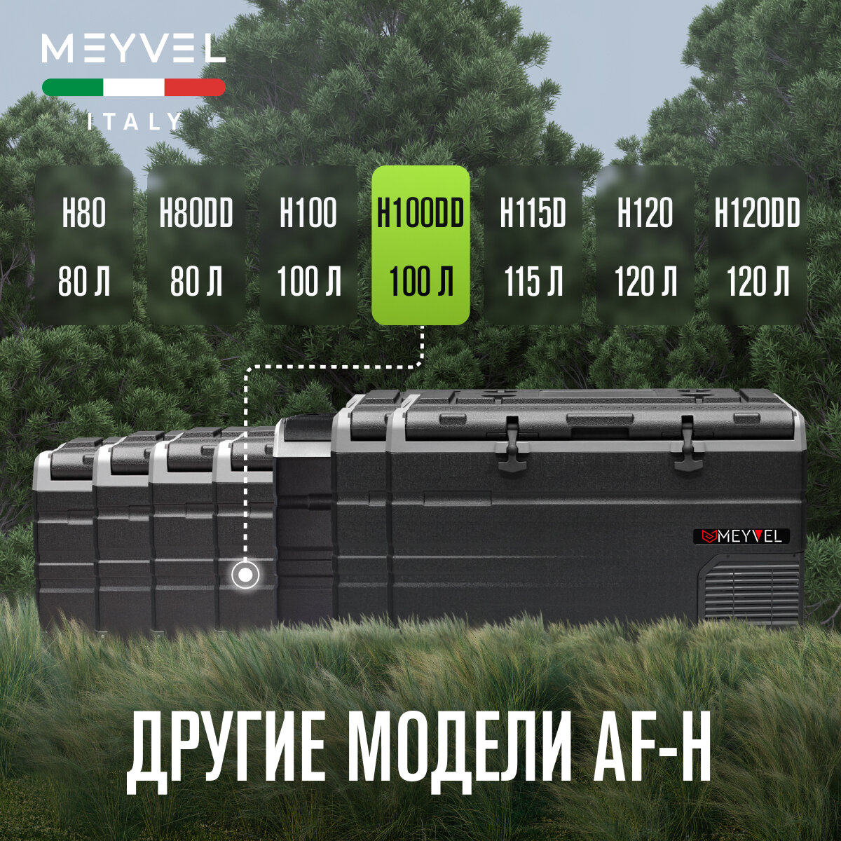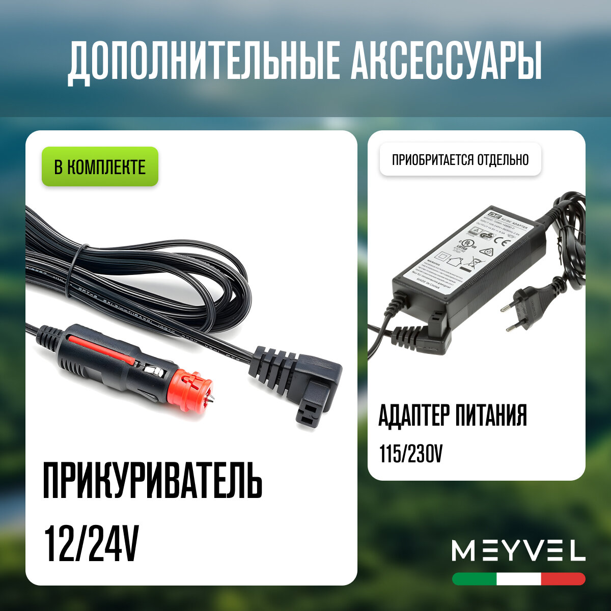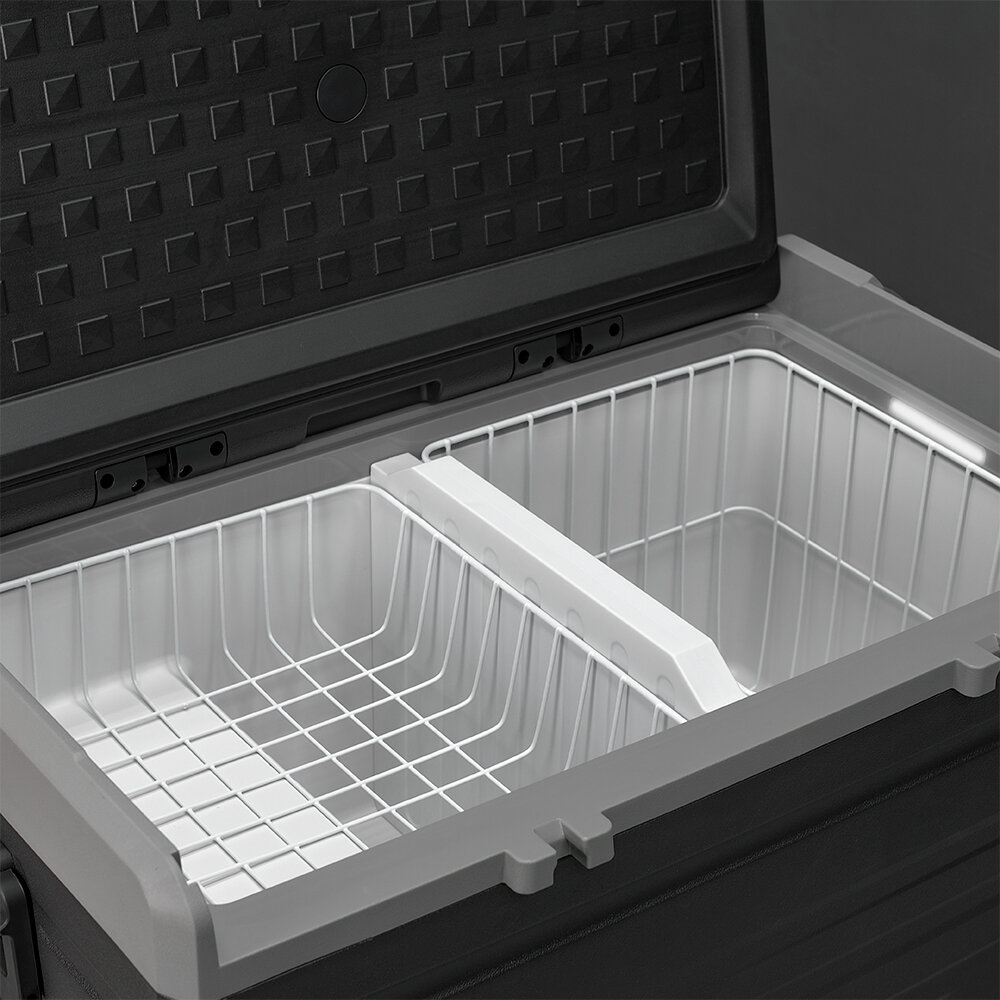 компрессорный автохолодильник Meyvel AF-H100DD - 1 шт., кабель питания 12/24 В - 1 шт., две корзины для продуктов, разделительная перегородка, инструкция пользователя - 1 шт.