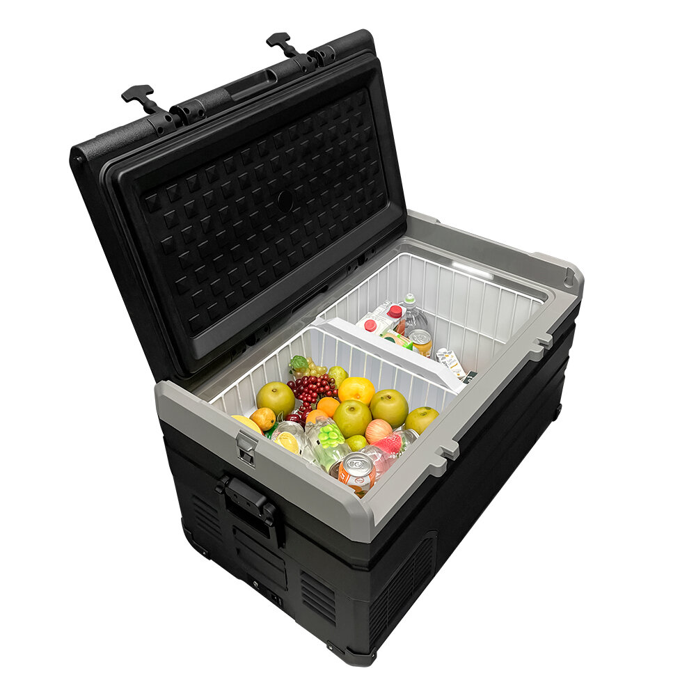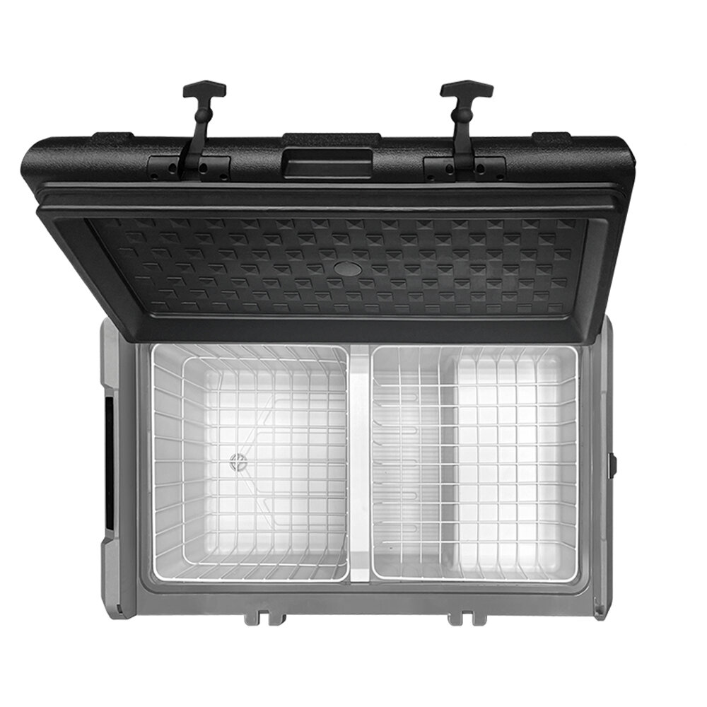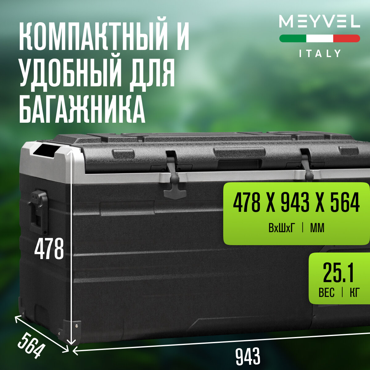 компрессорный автохолодильник Meyvel AF-H100DD - 1 шт., кабель питания 12/24 В - 1 шт., две корзины для продуктов, разделительная перегородка, инструкция пользователя - 1 шт.