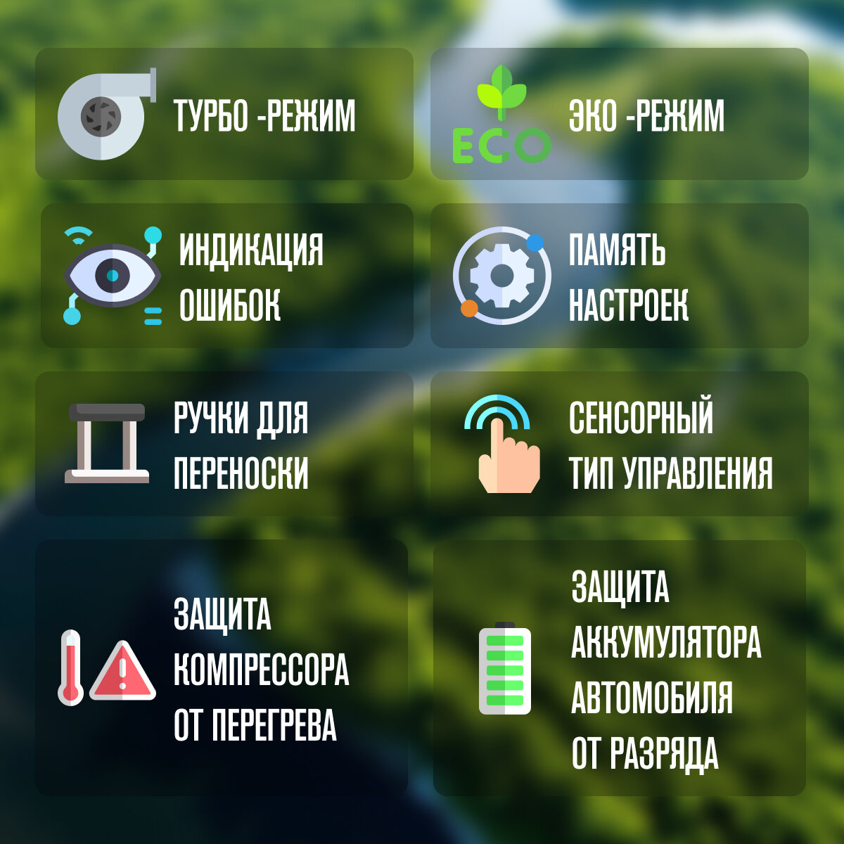 Защита от разряда аккумулятора, Память настроек, Индикация ошибок