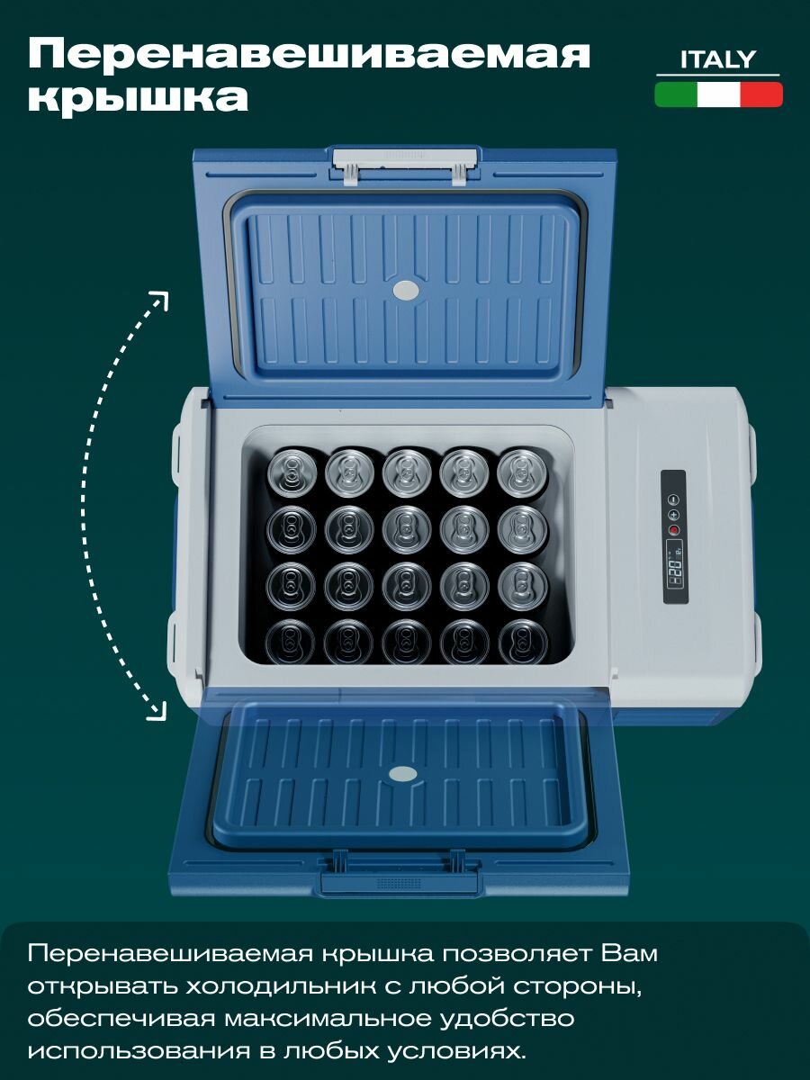 автоматический контроль температуры, перенавешиваемая дверь, наклон компрессора до 40°, защита компрессора от перегрева, защита испарителя, работа от солнечных батарей, электромагнитная совместимость, индикация ошибок