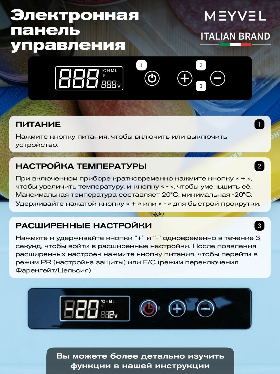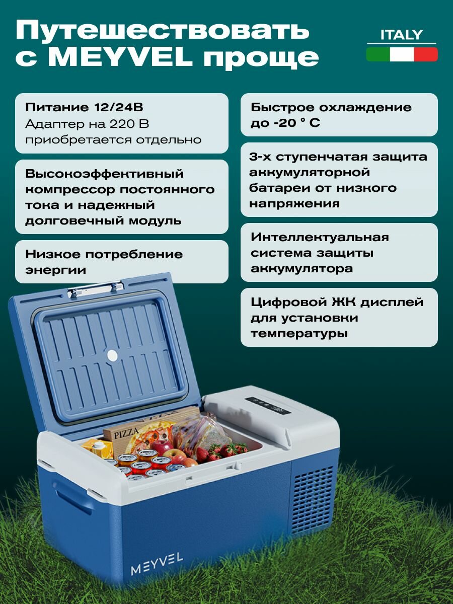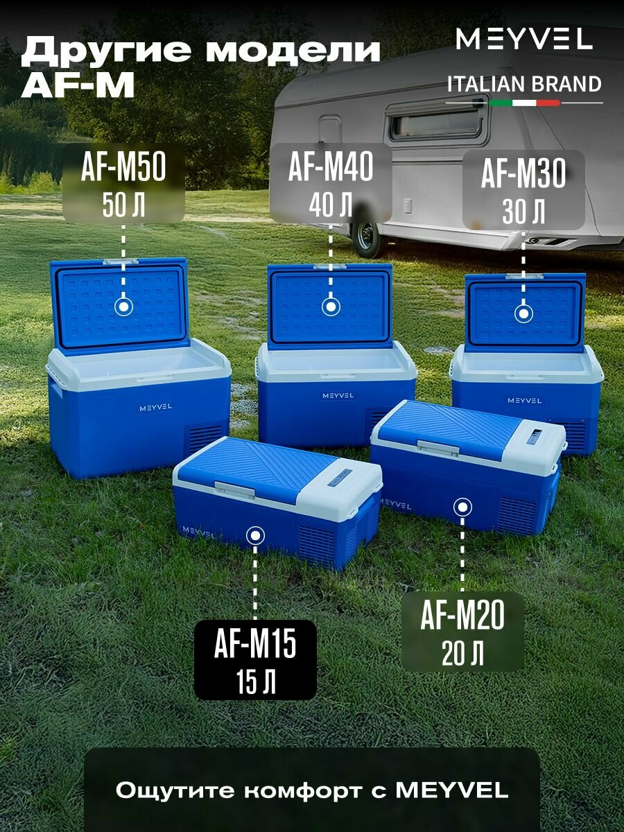 Компрессорный автохолодильник Meyvel AF-M15 - 1 шт. Кабель питания 12/24 В - 1 шт. Инструкция пользователя - 1 шт.
