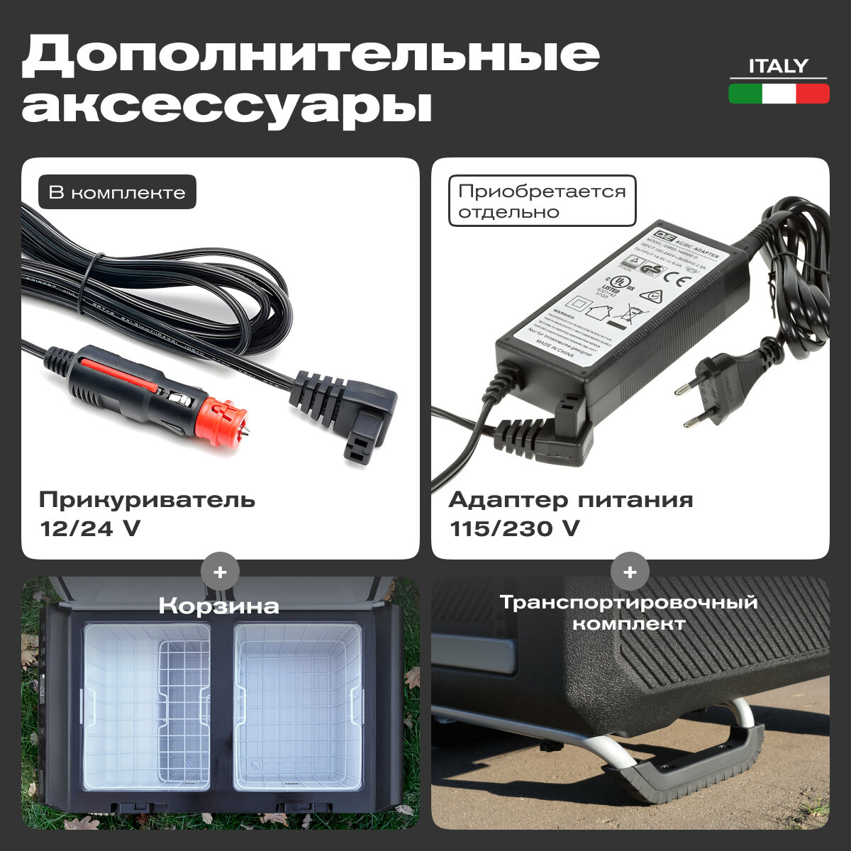 кабель питания 12/24 В, съёмная корзина для продуктов, инструкция