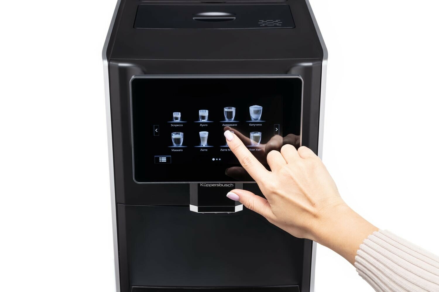 Тип TFT-дисплея: HD с диагональю 7“ Регулируемый объем напитка: 20-250 мл 5 ступеней температуры кофе: 75-90°С 4 уровня помола кофе Емкость для воды заполняется сзади