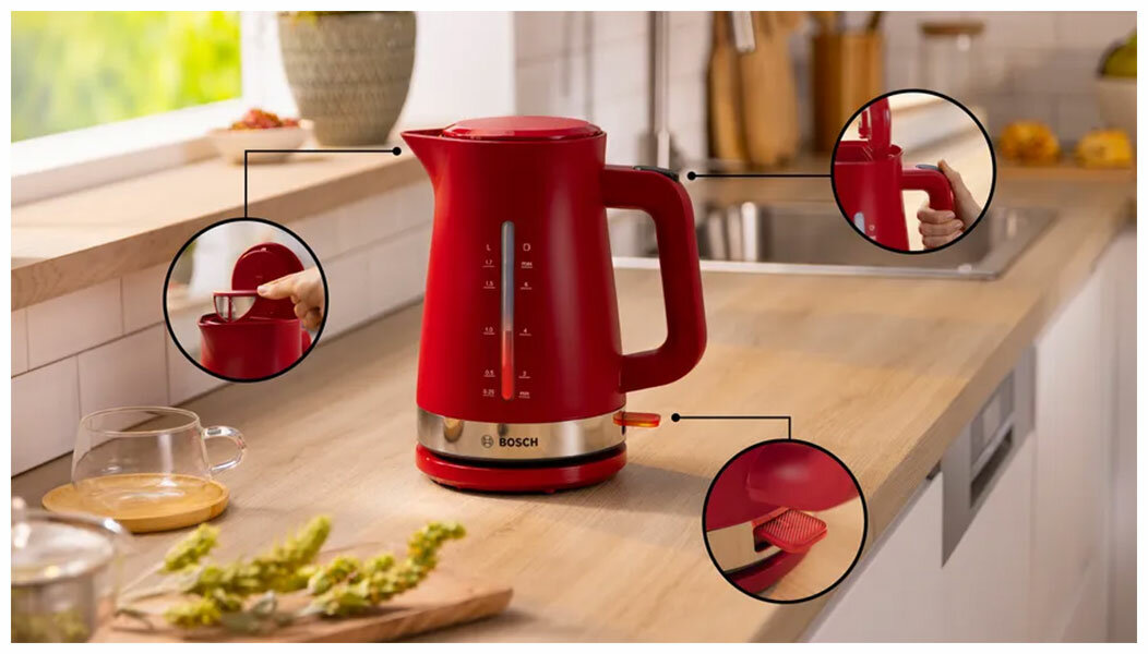 Чайник электрический Bosch TWK4M224 1.7л. красный