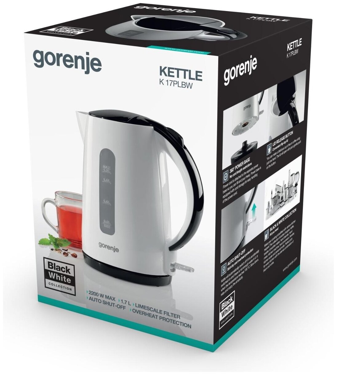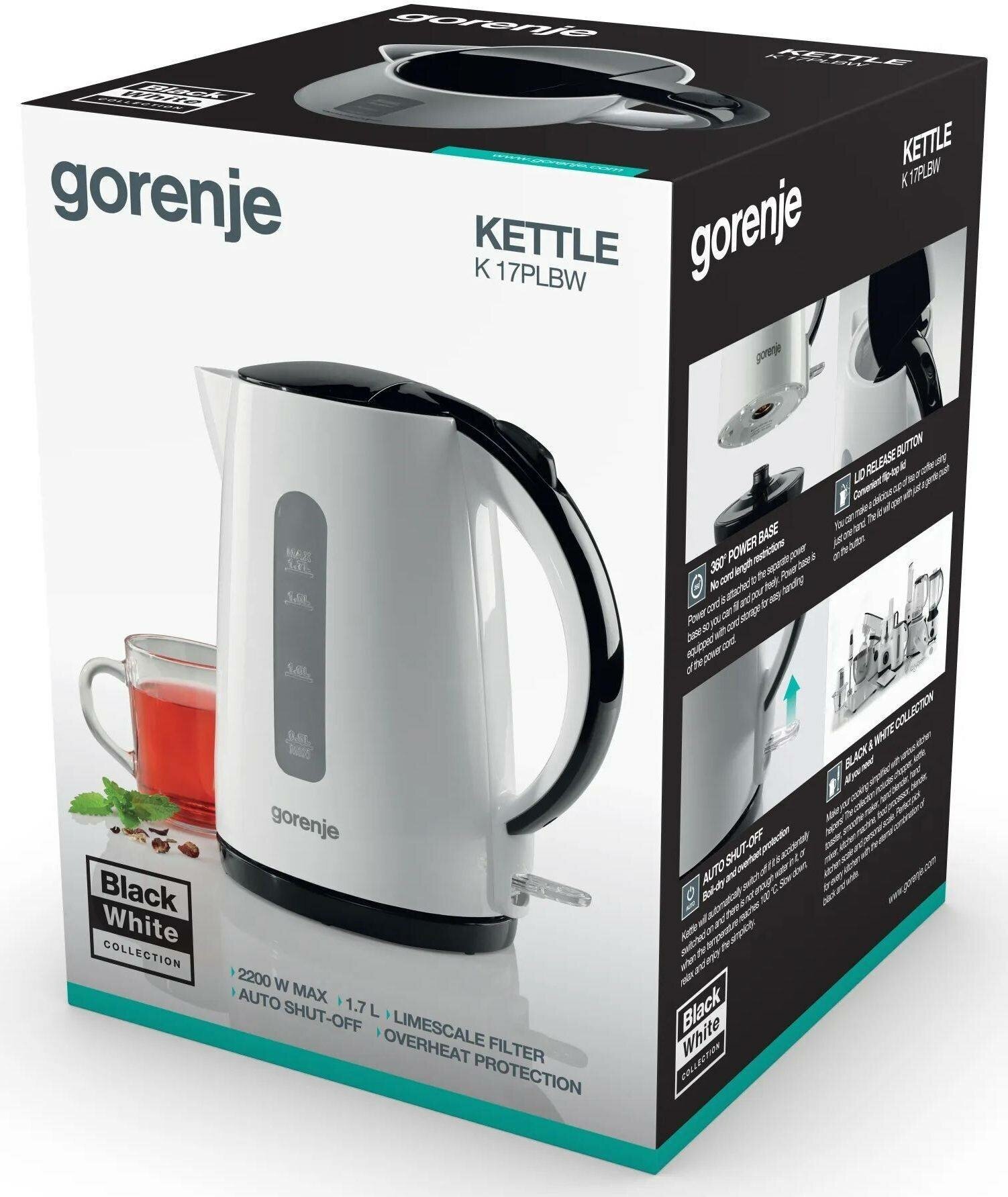 Чайник электрический Gorenje K17PLBW белый/черный