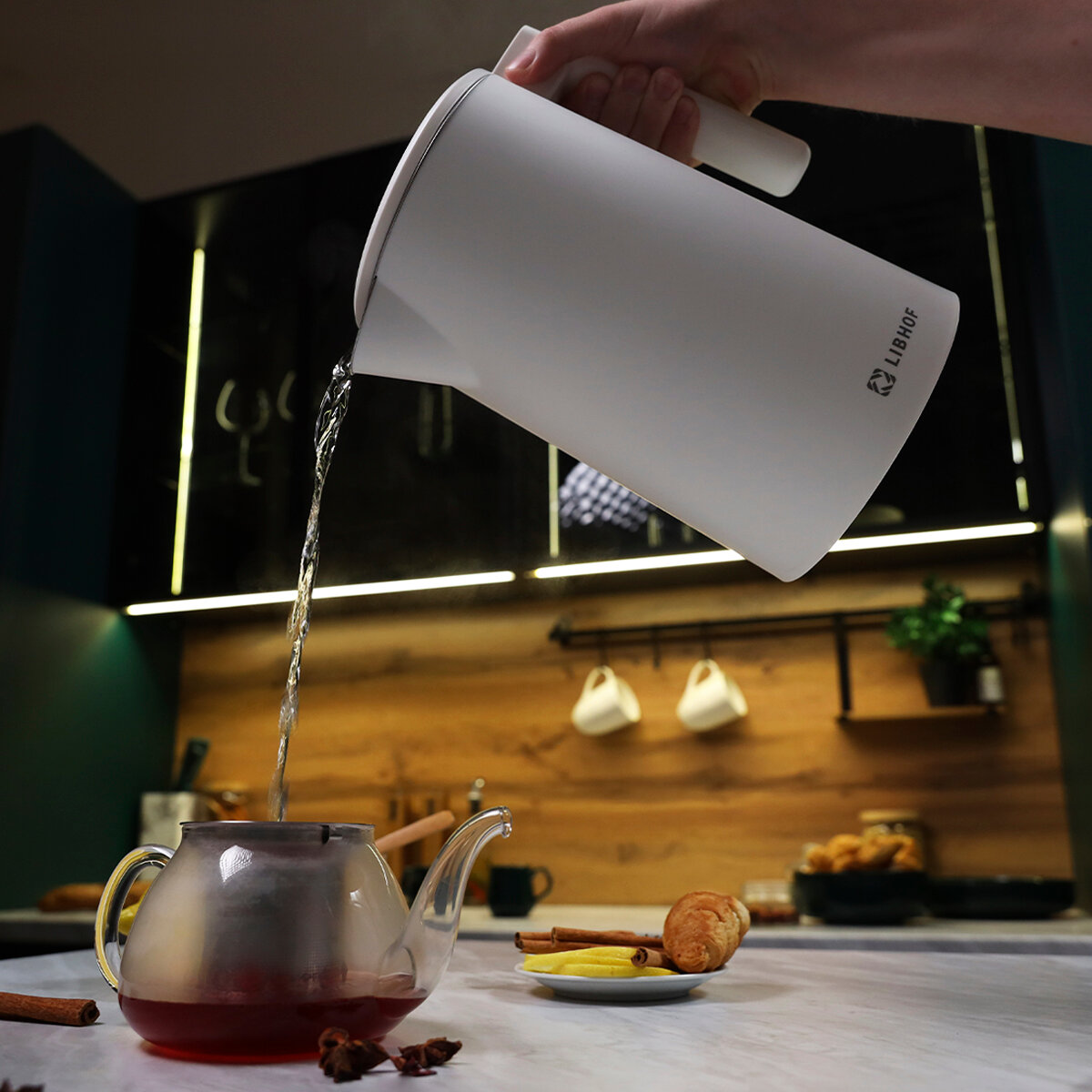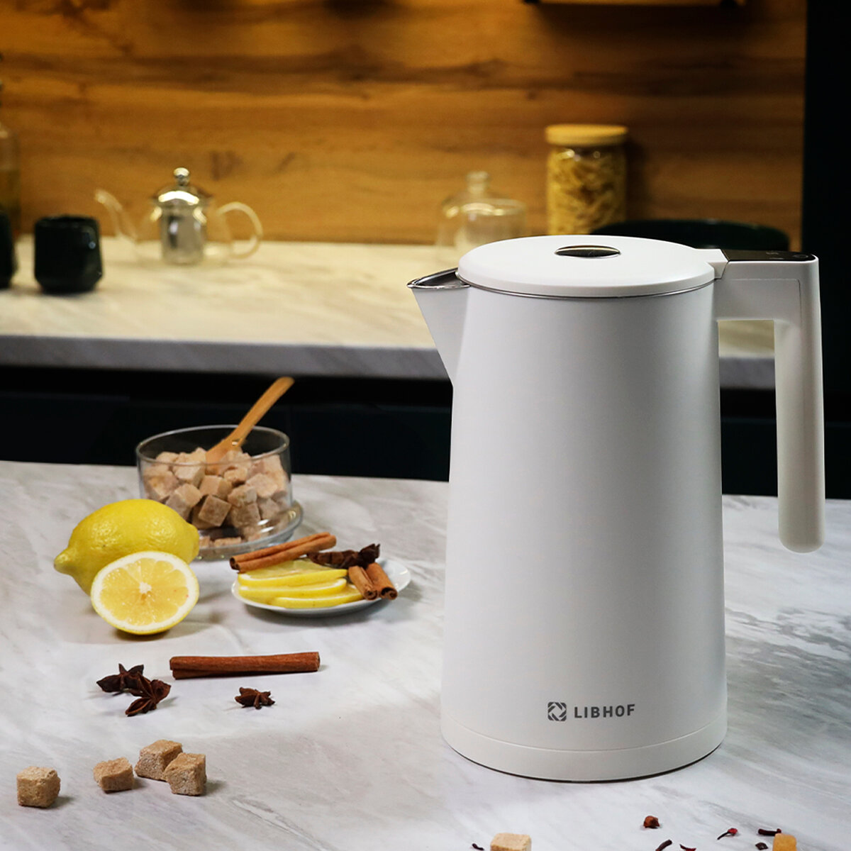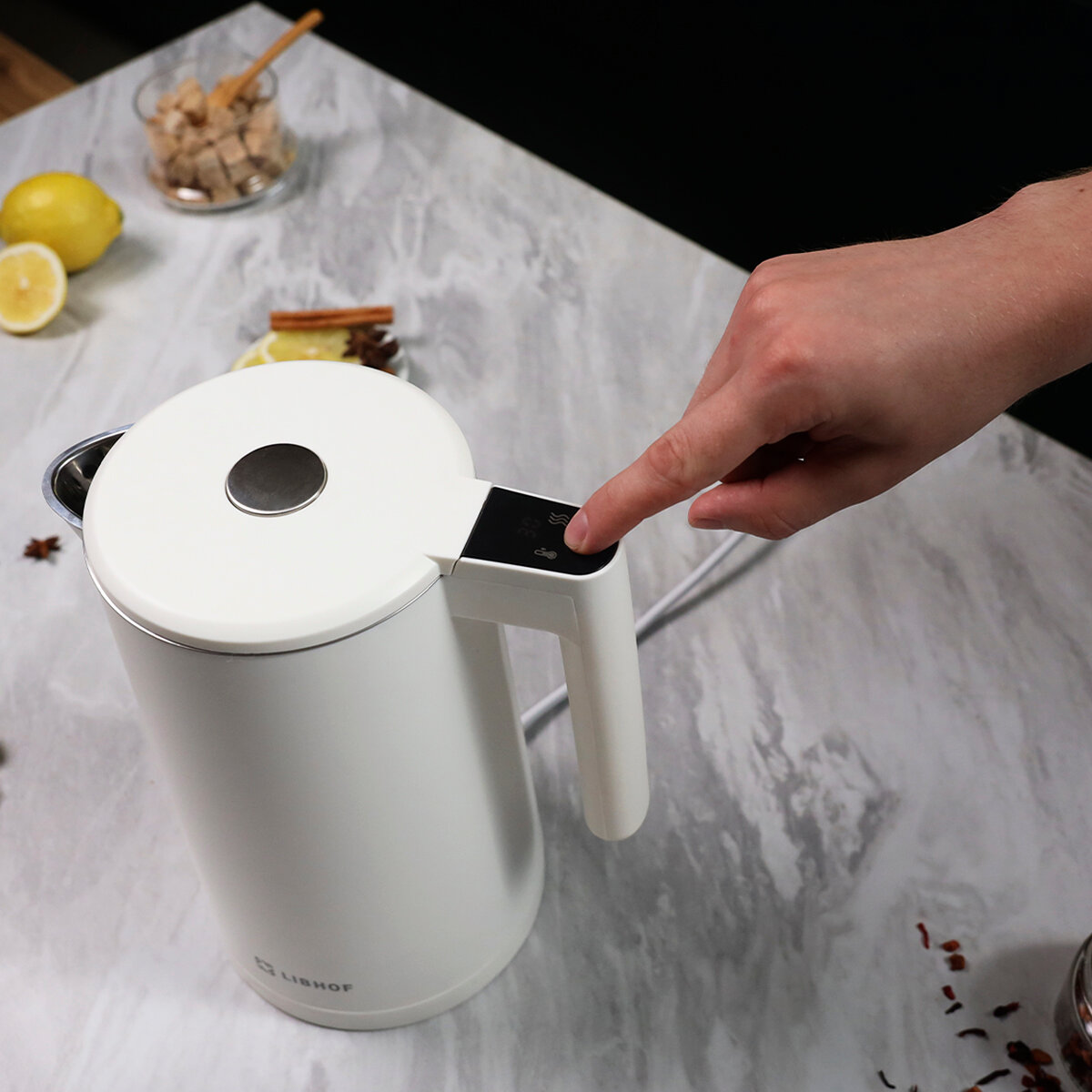 вращение на 360 градусов, двойные стенки, дисплей, индикатор уровня воды, сенсорное управление, программы установки температуры
