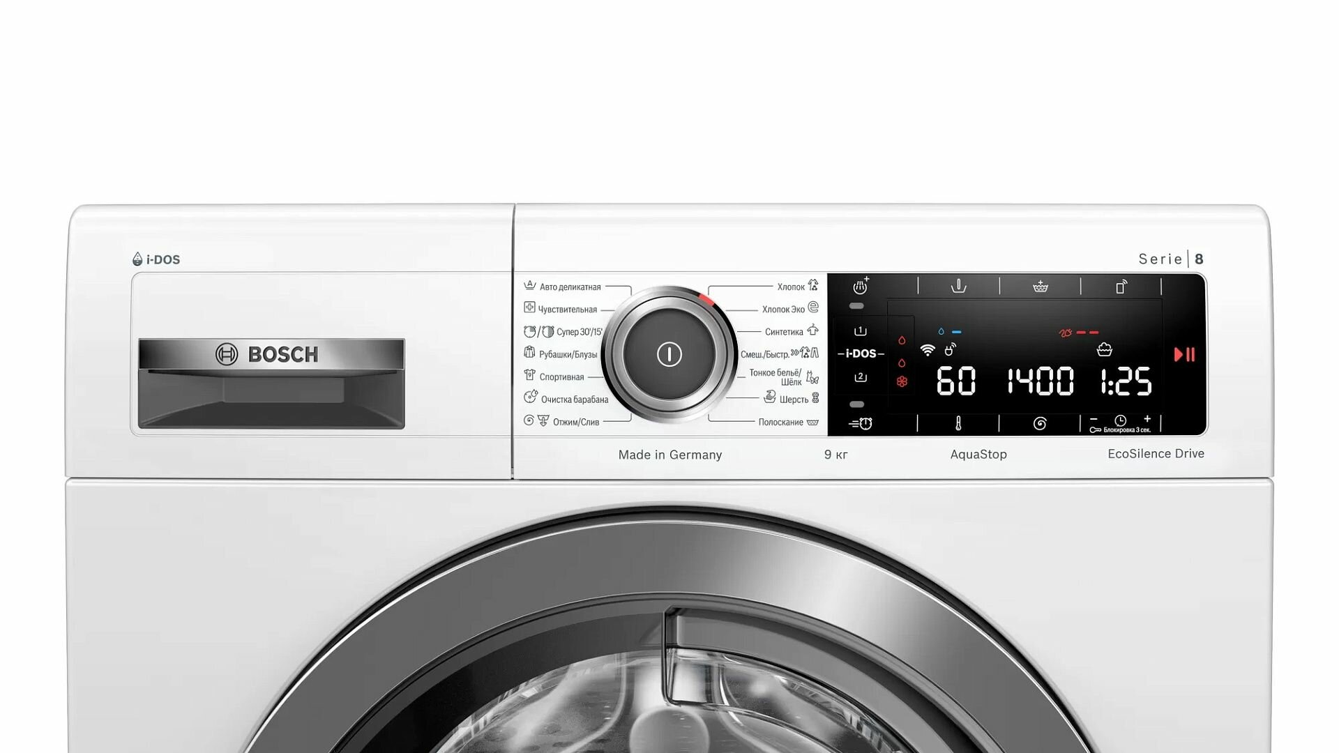 автоматическая программа стирки; технология i-DOS: автоматическое дозирование жидкого моющего средства и кондиционера;