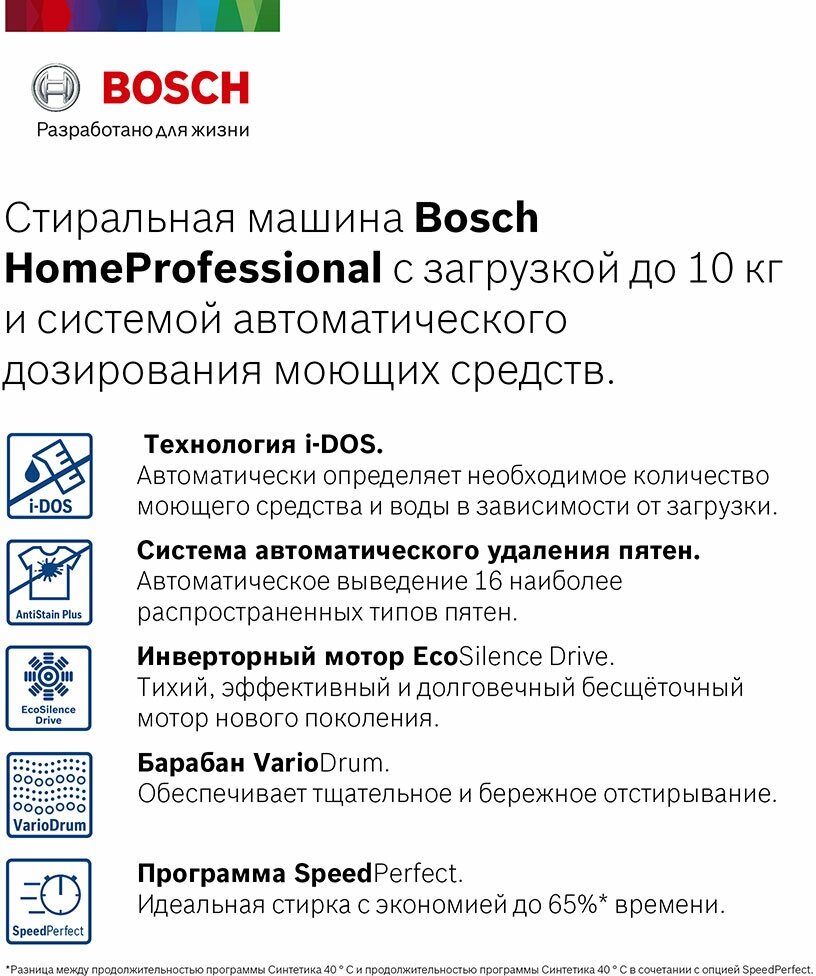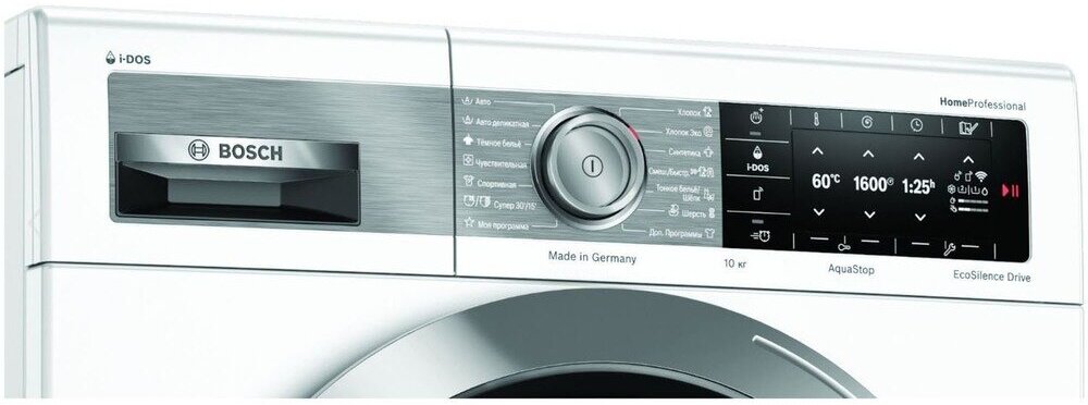 автоматическая программа стирки, технология удаления пятен AntiStain Plus, i-Dos - автоматическое точное дозирование жидкого моющего средства; подсветка барабана