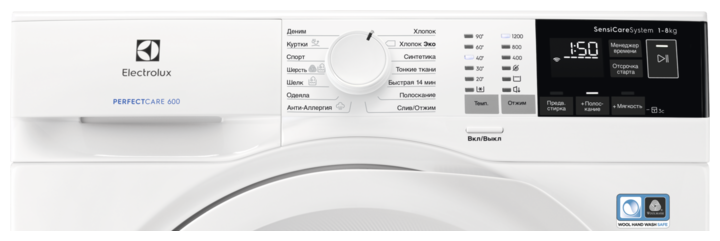 комплексная система SensiCare, которая анализирует данные при каждой загрузке, чтобы подобрать эффективную длительность стирки и оптимизировать расходы воды и электроэнергии