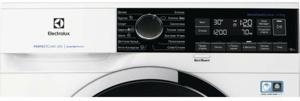 выбор скорости отжима, выбор температуры стирки, интеллектуальное управление стиркой, контроль баланса, контроль за уровнем пены, отложенный старт, сигнал окончания стирки