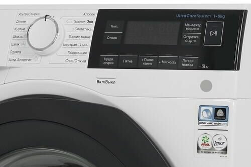 быстрая стирка, дополнительное полоскание, замачивание, отжим, отмена отжима, полоскание, предварительная стирка, предотвращение сминания, стирка верхней одежды, стирка деликатных тканей, стирка джинсов, стирка подушек, стирка пуховых вещей, стирка синтетики, стирка хлопка, стирка черных вещей, стирка шелка, стирка шерсти, удаление пятен, экономичная программа, Антиаллергенная с паром, Вкл/Выкл, Деликатная стирка, Деним, Куртки, Пуховые одеяла, Ультра Стирка, Хлопок Эко, Шерсть Плюс, нижнее белье, одеяла/пледы, половинная загрузка, постельное белье, спорт, стирка в холодной воде, хлопок эко, шторы