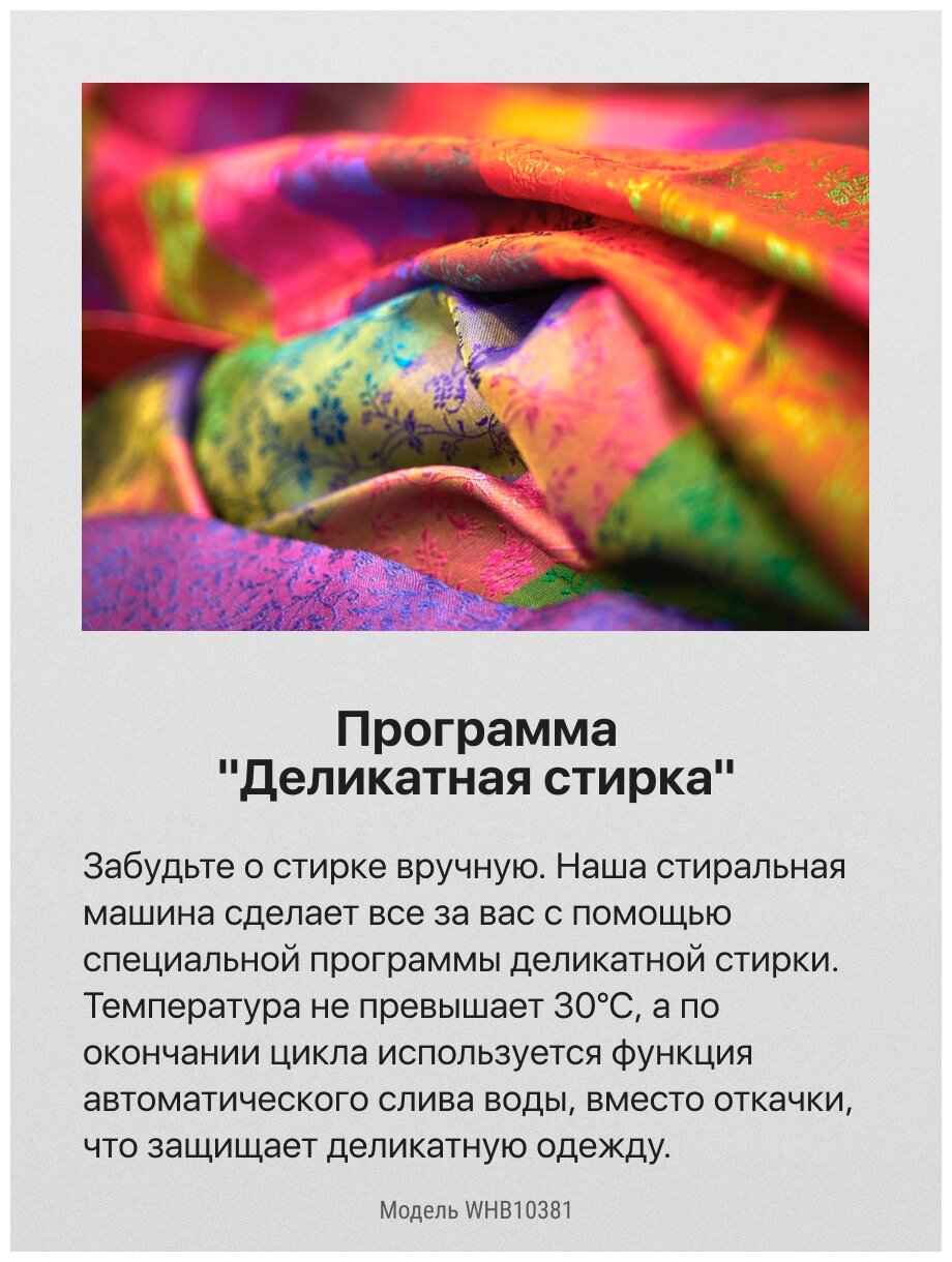 быстрая стирка, дополнительное полоскание, ежедневная стирка, отжим, отмена отжима, полоскание, предварительная стирка, стирка верхней одежды, стирка деликатных тканей, стирка детских вещей, стирка синтетики, стирка смешанных тканей, стирка хлопка, стирка цветных вещей, стирка шелка, стирка шерсти, удаление пятен, экономичная программа, Деликатная стирка, Нет, Программа быстрой стирки, программа удаления пятен, стирка