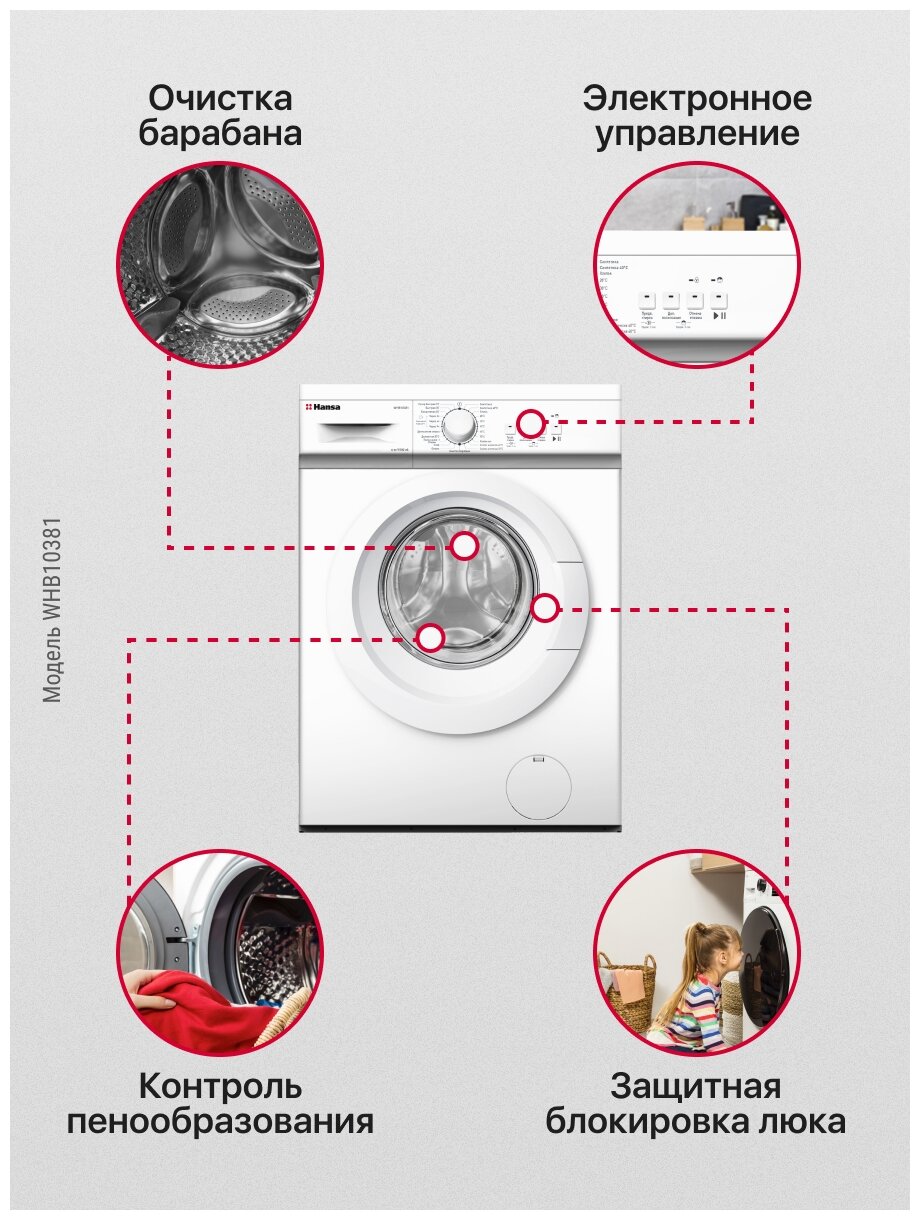 автовзвешивание, выбор скорости отжима, выбор температуры стирки, интеллектуальное управление стиркой, контроль баланса, контроль за уровнем пены, отложенный старт, очистка барабана, сигнал окончания стирки, Отмена отжима, сигнал окончания программы