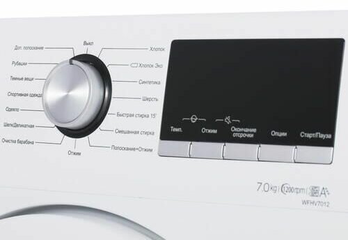 выбор скорости отжима, выбор температуры стирки, интеллектуальное управление стиркой, контроль баланса, контроль за уровнем пены, отложенный старт, сигнал окончания стирки