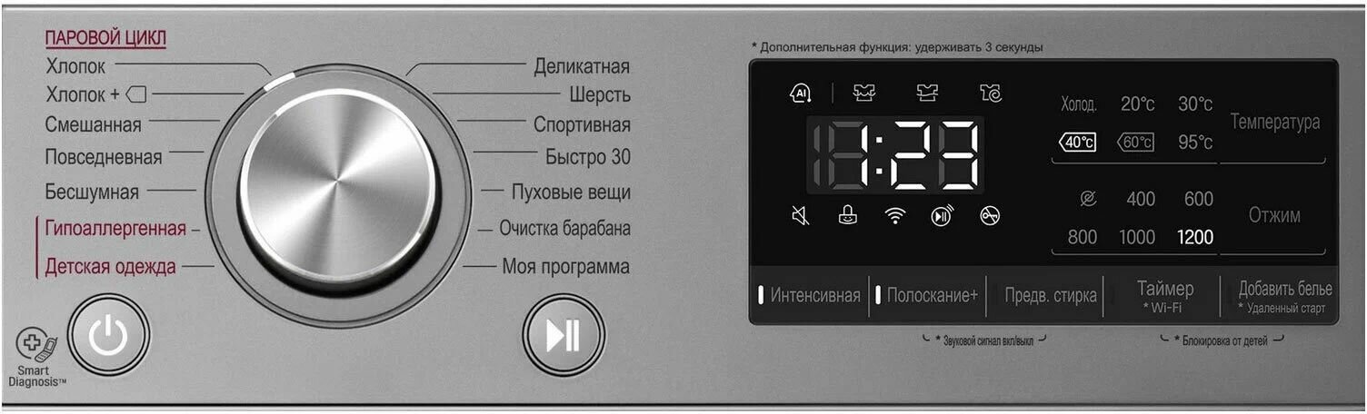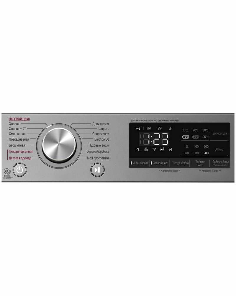 возможность управления через приложение SmartThinQ; технология LG Steam™; функция очистки барабана; Wi-Fi
