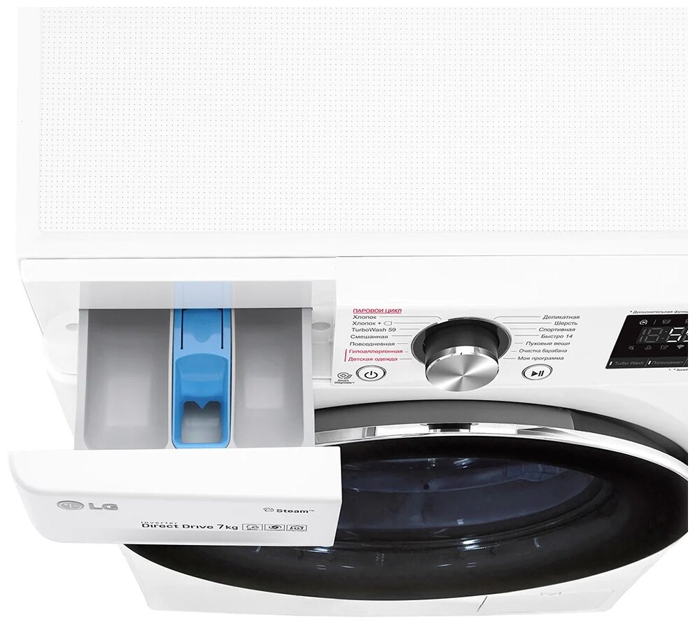 энергопотребление 1.06 кВт/ч; "Моя программа"; Wi-Fi; возможность управления через приложение LG ThinQ; очистка барабана