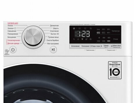 энергопотребление 1.35 кВт/ч; "Моя программа", очистка барабана; Wi-Fi; возможность управления через приложение LG ThinQ