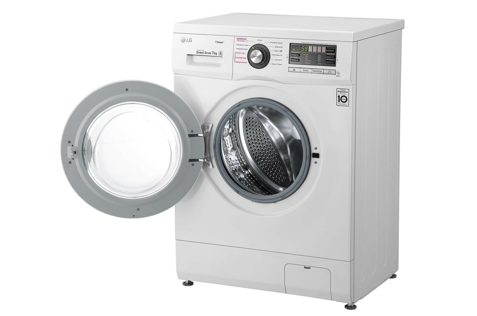 дисплей, открывание люка на 180 градусов, открывание люка направо, подсветка барабана, съемная верхняя крышка, 180, 180, дисплей, Да, Нет, Низкий уровень шума при работе, Рельефная поверхность, Рельефная поверхность барабана, прямой привод