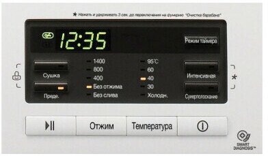 контроль за уровнем пены, отложенный старт, очистка барабана, пузырьковая стирка, Звуковой сигнал, Отмена отжима