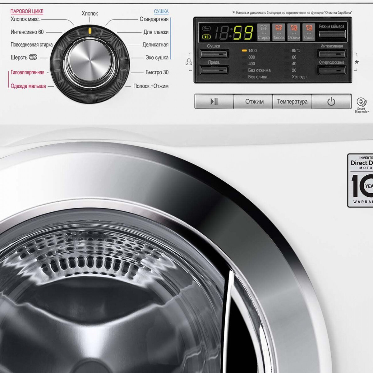 быстрая стирка, гипоаллергенная стирка, дополнительное полоскание, ежедневная стирка, замачивание, интенсивная стирка, отжим, полоскание, предварительная стирка, стирка верхней одежды, стирка деликатных тканей, стирка детских вещей, стирка джинсов, стирка одеяла, стирка паром, стирка подушек, стирка пуховых вещей, стирка синтетики, стирка смешанных тканей, стирка спортивной обуви, стирка спортивной одежды, стирка хлопка, стирка цветных вещей, стирка черных вещей, стирка шерсти, удаление пятен, Да, Для глажки, Интенсивно 60, Одежда малыша, Полоскание + отжим, Полоскание+Отжим. Программы сушки: Стандартная, Хлопок макс., Эко сушка, обработка паром, стирка, стирка + сушка 59мин, стирка ||, стирка в холодной воде, стирка с паром, стирка с сушкой 59мин, стирка с функцией сушки, стирка синтетических вещей, стирка синтетических тканей, стирка спортивных вещей, стирка спортивных обуви, стирка хлопка макс.