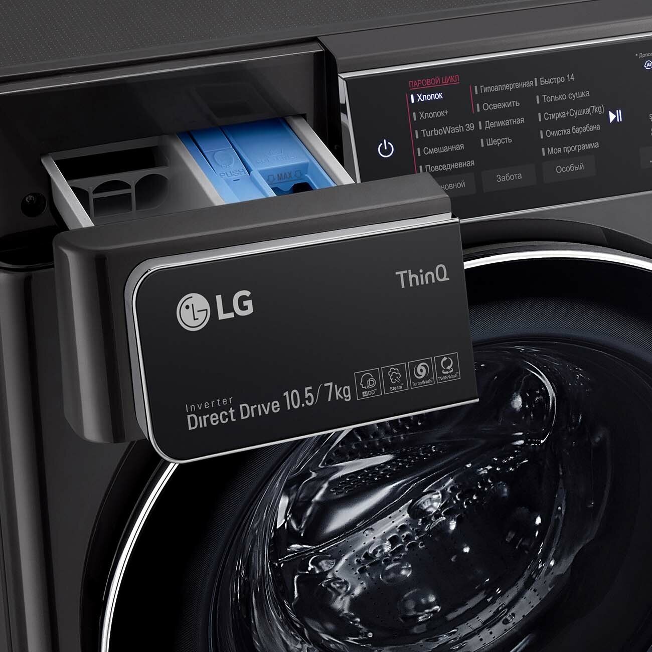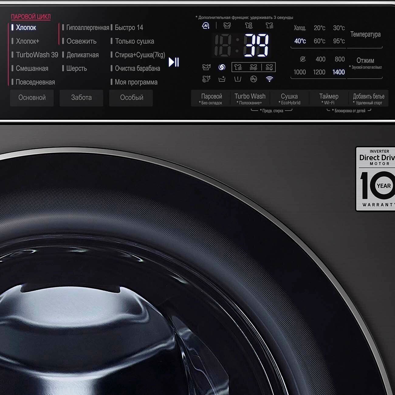 Smart Diagnosis, 6 движений заботы, Wi-Fi, возможность управления через приложение LG ThinQ, мобильная диагностика Smart Diagnosis, технология AI DD, функция быстрой стирки TurboWash, функция пара Steam