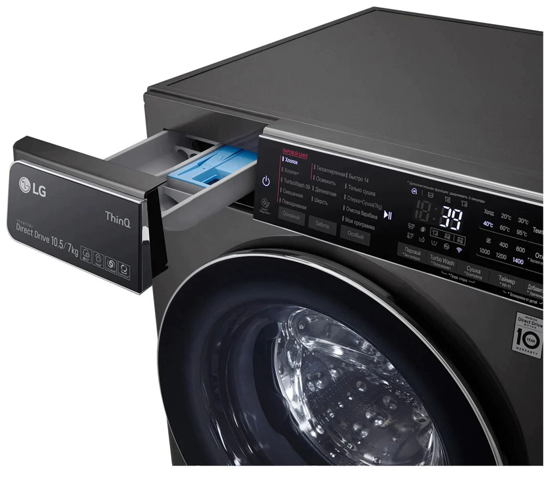 быстрая стирка, гипоаллергенная стирка, дополнительное полоскание, ежедневная стирка, полоскание, предварительная стирка, ручная стирка, стирка в большом количестве воды, стирка верхней одежды, стирка деликатных тканей, стирка детских вещей, стирка джинсов, стирка одеяла, стирка паром, стирка подушек, стирка пуховых вещей, стирка смешанных тканей, стирка спортивной обуви, стирка спортивной одежды, стирка хлопка, стирка цветных вещей, стирка черных вещей, стирка шерсти, удаление пятен, TurboWash 39, Быстро 14, Моя программа. Программы сушки: Стандартная, Настраиваемый режим стирки, Освежить, Стирка + Сушка (5кг), Хлопок +, Эко сушка, быстро 14, моя программа, освежить, стирка+сушка, только сушка, хлопок +, хлопок плюс