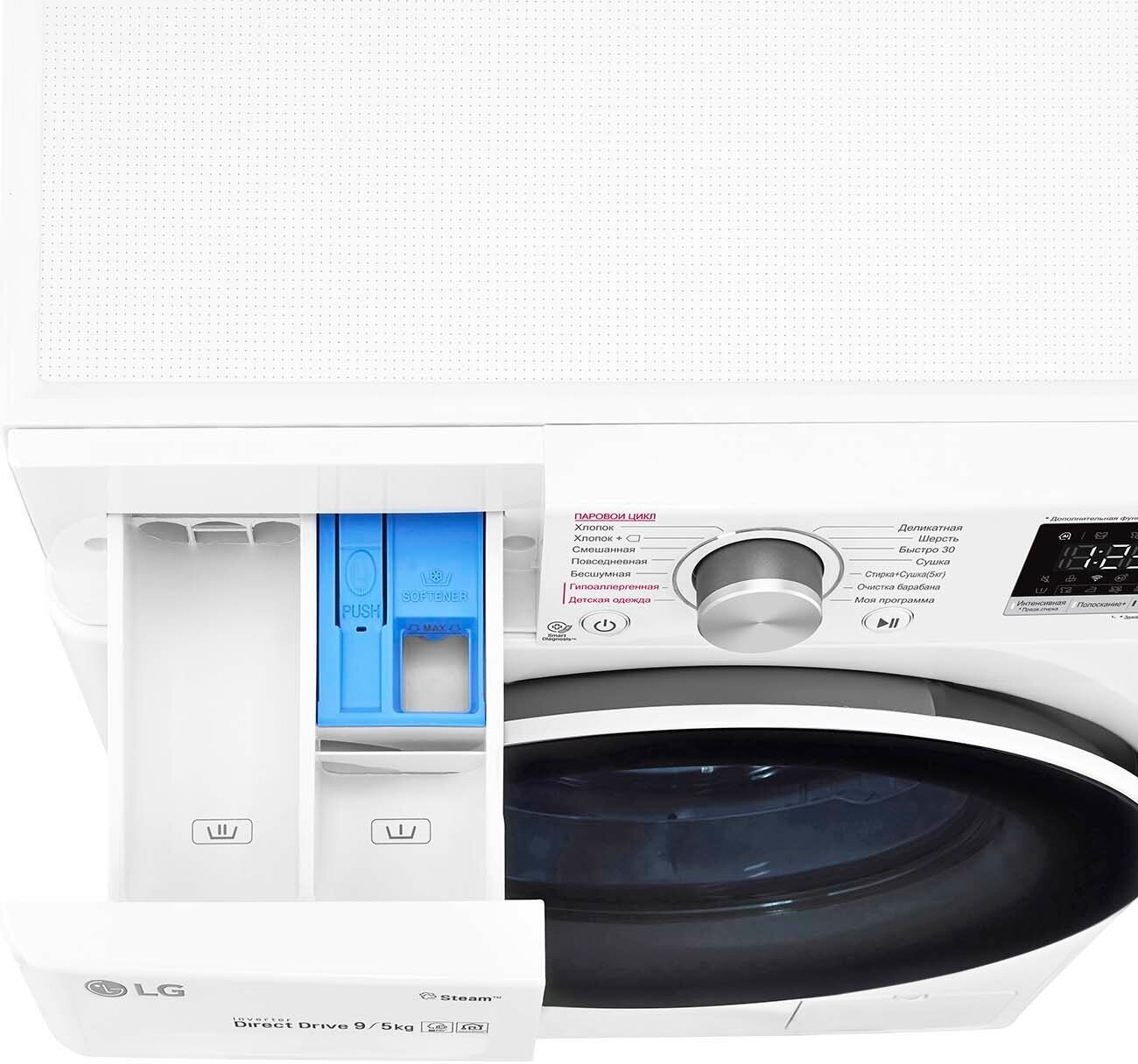 энергопотребление - 1.17 кВт/ч, энергопотребление (стирка + сушка) - 6.12 кВт/ч; расход воды - 45 л, расход воды за цикл с сушкой - 140 л; функция пара Steam; "Моя программа"; очистка барабана; Wi-Fi; возможность управления через приложение LG ThinQ;