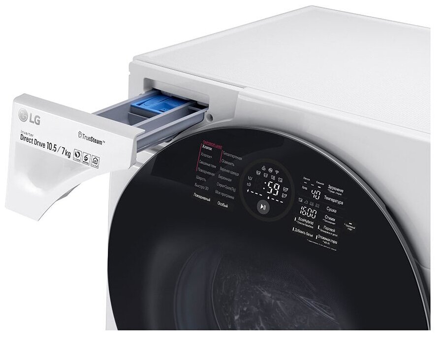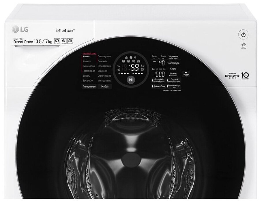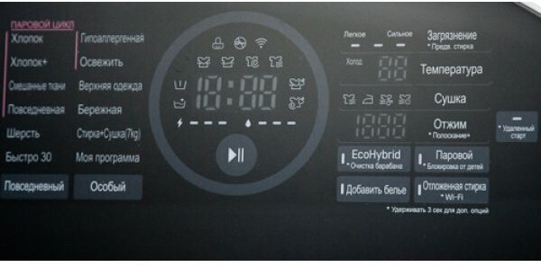 быстрая стирка, гипоаллергенная стирка, дополнительное полоскание, ежедневная стирка, замачивание, отжим, отмена отжима, полоскание, предварительная стирка, предотвращение сминания, стирка верхней одежды, стирка деликатных тканей, стирка детских вещей, стирка смешанных тканей, стирка спортивной одежды, стирка хлопка, стирка черных вещей, стирка шерсти, удаление пятен, экономичная программа, Авто, Быстро 14, Быстро 49, Да, Деликатные ткани, Освежить, Очистка барабана, Пoлоскание + Отжим, Повседневная (1 кг), Стирка + Сушка, Сушка, Только отжим, блузки/рубашки, одеяла/пледы, подача пара, половинная загрузка, программа замачивания, тонкие ткани/шелк, хлопок эко