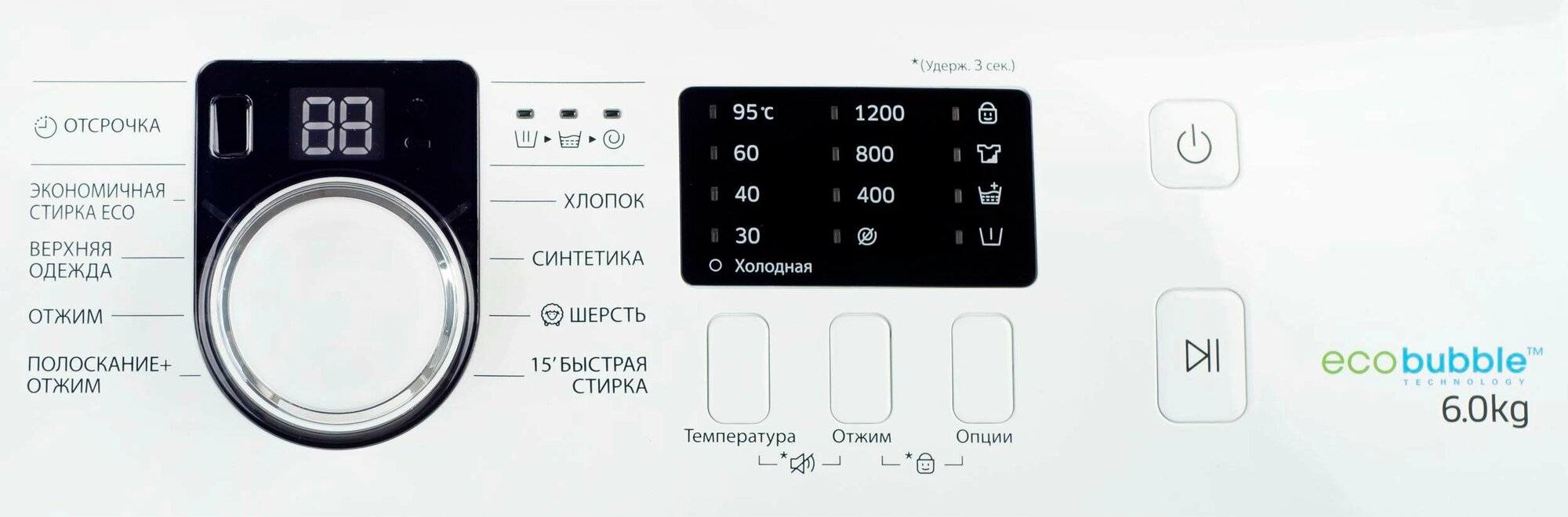 быстрая стирка, дополнительное полоскание, замачивание, интенсивная стирка, отжим, отмена отжима, полоскание, предварительная стирка, стирка верхней одежды, стирка деликатных тканей, стирка детских вещей, стирка синтетики, стирка хлопка, стирка шерсти, экономичная программа, Нет, полоскание+, полоскание+отжим, экономичная Eco
