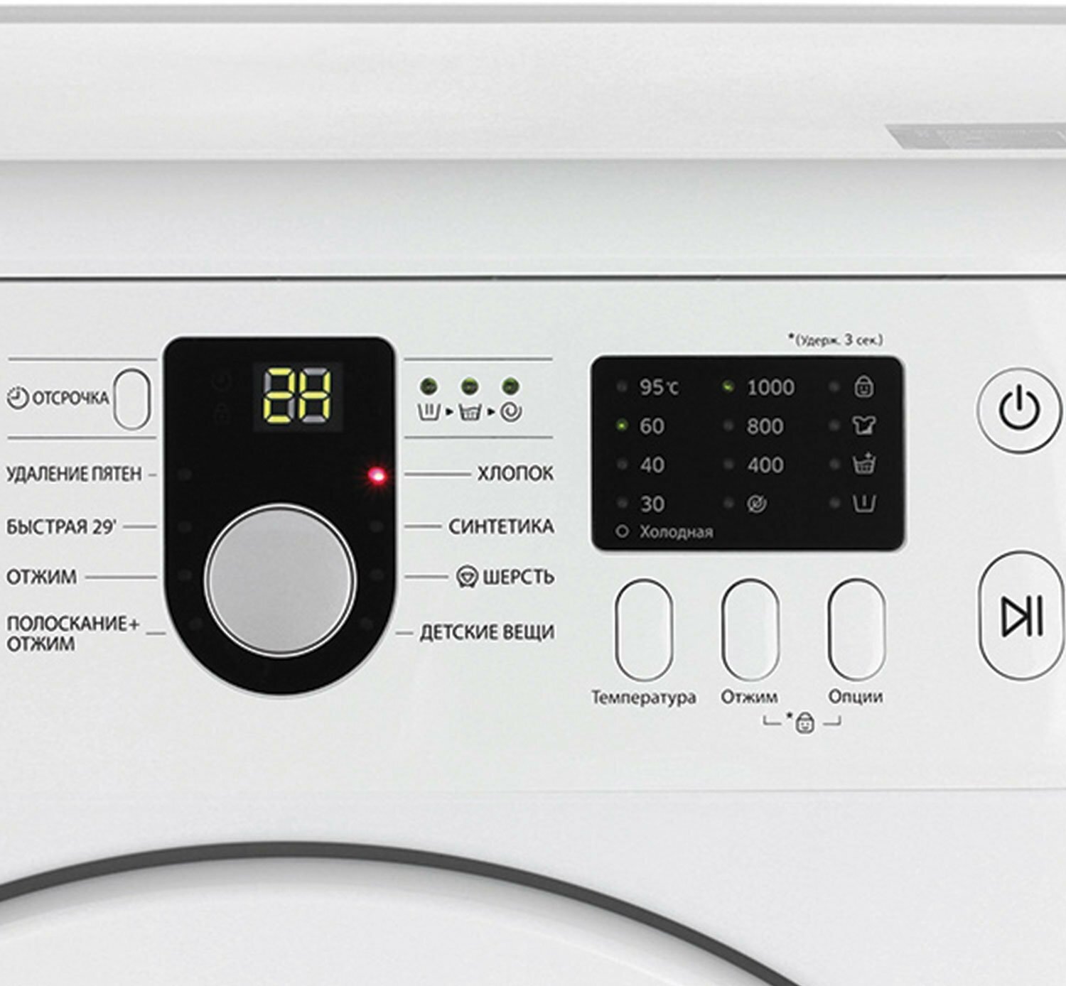 быстрая стирка, дополнительное полоскание, интенсивная стирка, отжим, полоскание, предварительная стирка, стирка деликатных тканей, стирка детских вещей, стирка синтетики, стирка хлопка, стирка шерсти, удаление пятен, Полоскание + отжим, половинная загрузка, полоскание+отжим