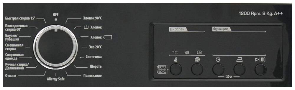 быстрая стирка, дополнительное полоскание, ежедневная стирка, замачивание, отжим, полоскание, предварительная стирка, ручная стирка, стирка верхней одежды, стирка деликатных тканей, стирка детских вещей, стирка синтетики, стирка смешанных тканей, стирка спортивной одежды, стирка хлопка, стирка цветных вещей, стирка шелка, стирка шерсти, экономичная программа, Eco 20С, Блузки/рубашки, Быстрая 15 мин, Повседневная стирка 60 минут, Ручная стирка/Деликатная, Хлопок 90/60/40C, Цветное белье, смешанное белье, спорт