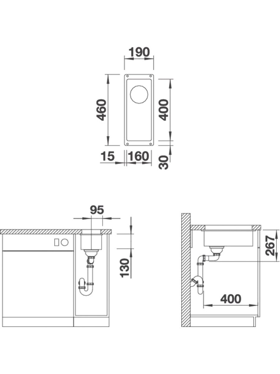 Дополнительная чаша Blanco SubLine 160-U алюметаллик (523398)