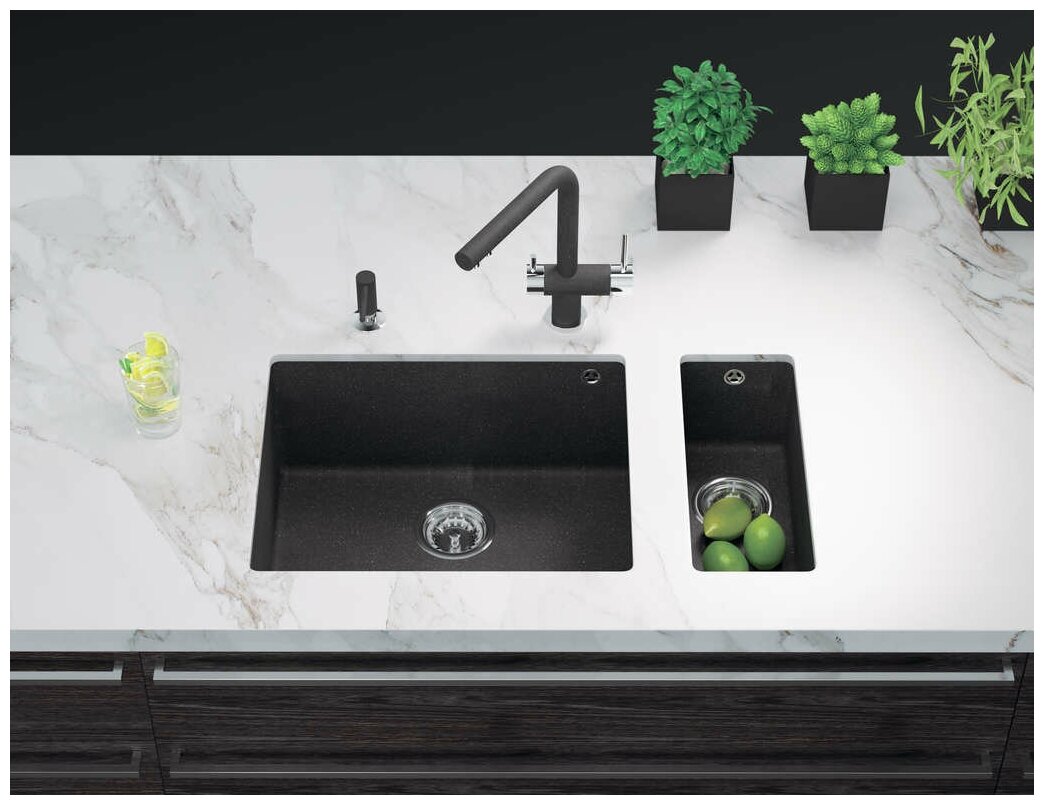 - За счет окрашивания каждой частицы гранитного материала при помощи специальной технологии, первоначальный цвет мойки гарантировано сохраняется в течение всего срока службы;