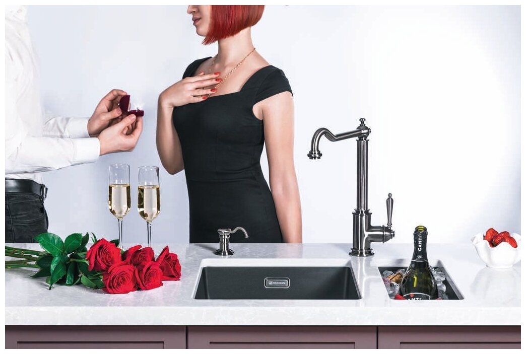 - Помимо гранита, в состав материала входит молотый кварц мельчайших размеров, которому характерны непревзойденная прочность и устойчивость к природным и химическим воздействиям. Свойства данного компонента вместе с долговечностью гранита обеспечивают мойке прочность и делают её устойчивой к любым механическим повреждениям: деформациям, сколам;