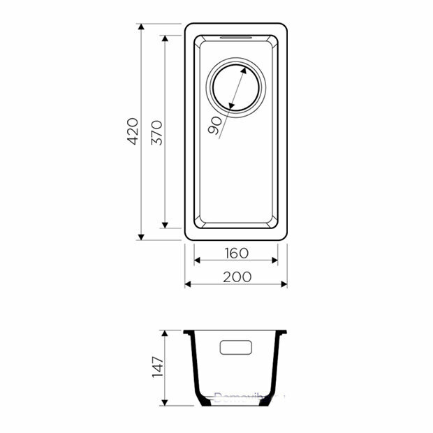 - Кухонная мойка изготовлена из матриала «Artgranit», технология производства которого заключается в том, что частицы кварца, гранита и прочного связующего полимера нового поколения, свойства которого похожи на акриловую смолу, соединяют вместе и помещают в форму. После застывания получается готовая мойка;