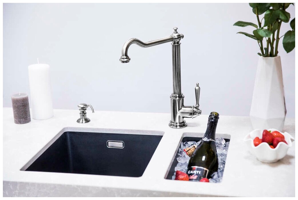 - Помимо гранита, в состав материала входит молотый кварц мельчайших размеров, которому характерны непревзойденная прочность и устойчивость к природным и химическим воздействиям. Свойства данного компонента вместе с долговечностью гранита обеспечивают мойке прочность и делают её устойчивой к любым механическим повреждениям: деформациям, сколам;