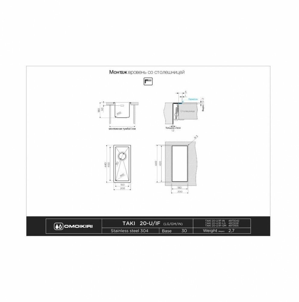 Скачать документы для Дополнительная чаша Omoikiri Taki 20-U/IF-IN нержавеющая сталь (4973042)