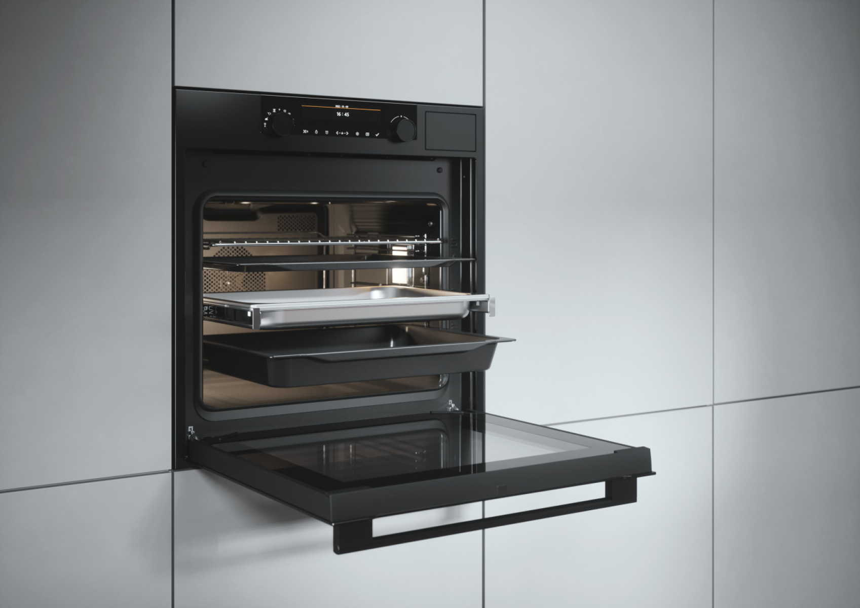 2 противня; 1 глубокий противень; 1 решетка; 1 GN размера XL без отверстий; 1 GN* размера XL с отверстиями
