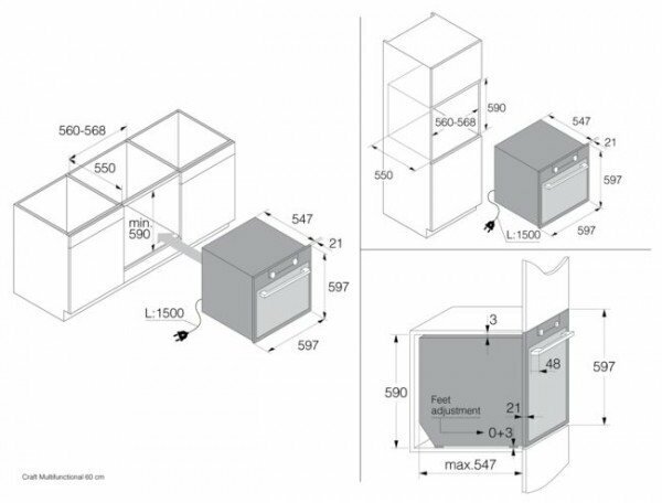 Доступны горячая трёхмерная воздушная конвекция, быстрый прогрев камеры и двухсторонняя подсветка, которая позволяет отслеживать степень готовности блюд и полностью контролировать весь процесс готовки.