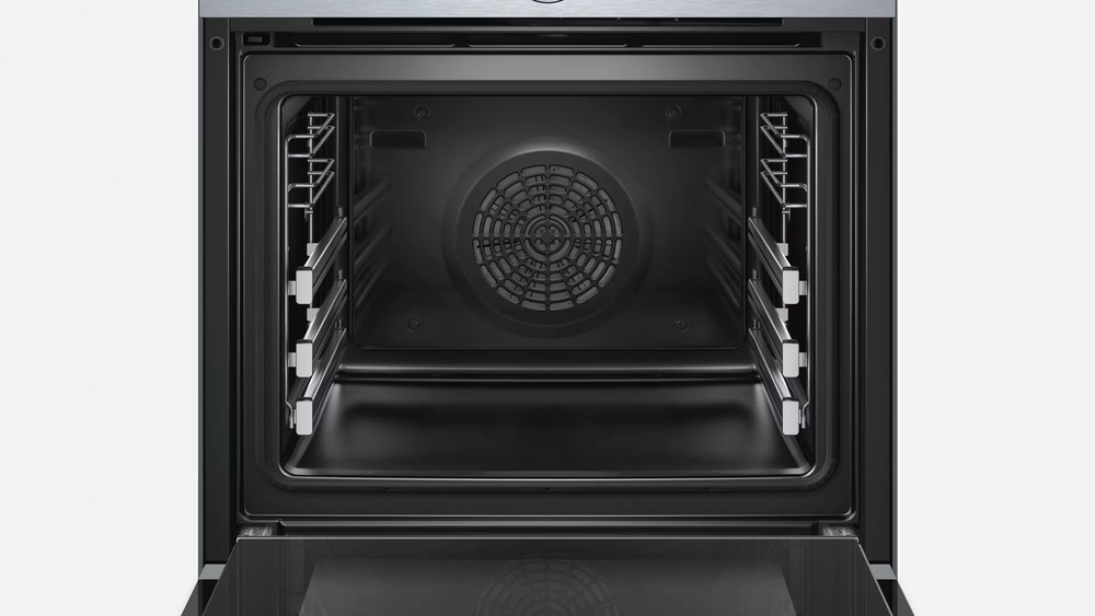 4D-горячий воздух 4D-горячий воздух Система «4D-горячий воздух» (4DHotАir) вдуховых шкафах немецкой фирмы Bosch изновейшей серии 8позволяет готовить нанескольких уровнях одновременно без смешивания вкусов изапахов. Обычно при приготовлении блюд вдуховом шкафу указывается, накаком уровне должен размещаться противень, чтобы получить лучший результат, так как даже если назадней стенке установлен вентилятор, распределение нагретого воздуха нестановится равномерным. Такой вентилятор скрыльчаткой изнержавеющей стали имеется ивдуховках, оснащенных программой «4D-горячий воздух», нодля него разработан специальный режим вращения— потри минуты вкаждую сторону— для оптимального перемешивания воздуха. Кроме того, выходные отверстия для горячего воздуха вбоковых стенках рабочей камеры размещены таким образом, чтобы охватывать все пространство между противнями. Нагрев вэтом случае производится при помощи кольцевого нагревательного элемента. Современные духовки ссистемой «4D-горячий воздух» очень удобны вочистке, поскольку вентилятор располагается сзади заспециальной решеткой. Бесшумную работу устройства гарантирует движение эффективный итихий двигатель EcoSilence Drive.