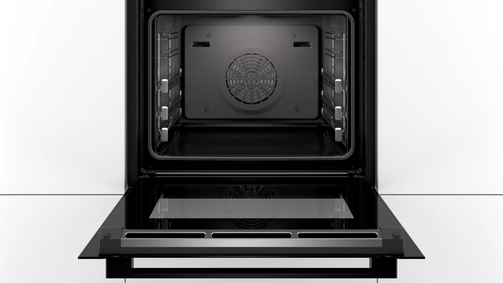 быстрый нагрев, Вентилятор охлаждения, Встроенные часы, Двухуровневое приготовление, Дисплей, Доводчик дверцы духовки, Полностью стеклянная внутренняя дверца, Хромированные направляющие